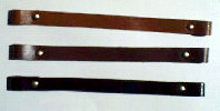 Our plain leather handles are 5/8" wide and their ends are looped and riveted into place. They are sold in pairs except for the 45" handles which are sold as singles. Leather handles are not included in quantity discounts.