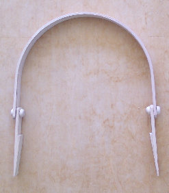 These swing handles are made out of oak and the swing joint is put together with a small wooden dowel and cap which we call "Wood Knob Fasteners. The notch on the ears is a small triangular block of wood that is glued on with marine glue.